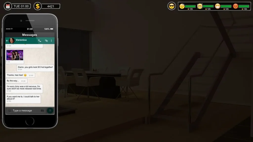 Keep an eye on other characters too. Peeking into the hallway at 23:00 can increase Veronica’s submission. Every small point matters. The early game is a slow burn, but these intentional interactions set the fuse for the exciting Ashley scenes later on.